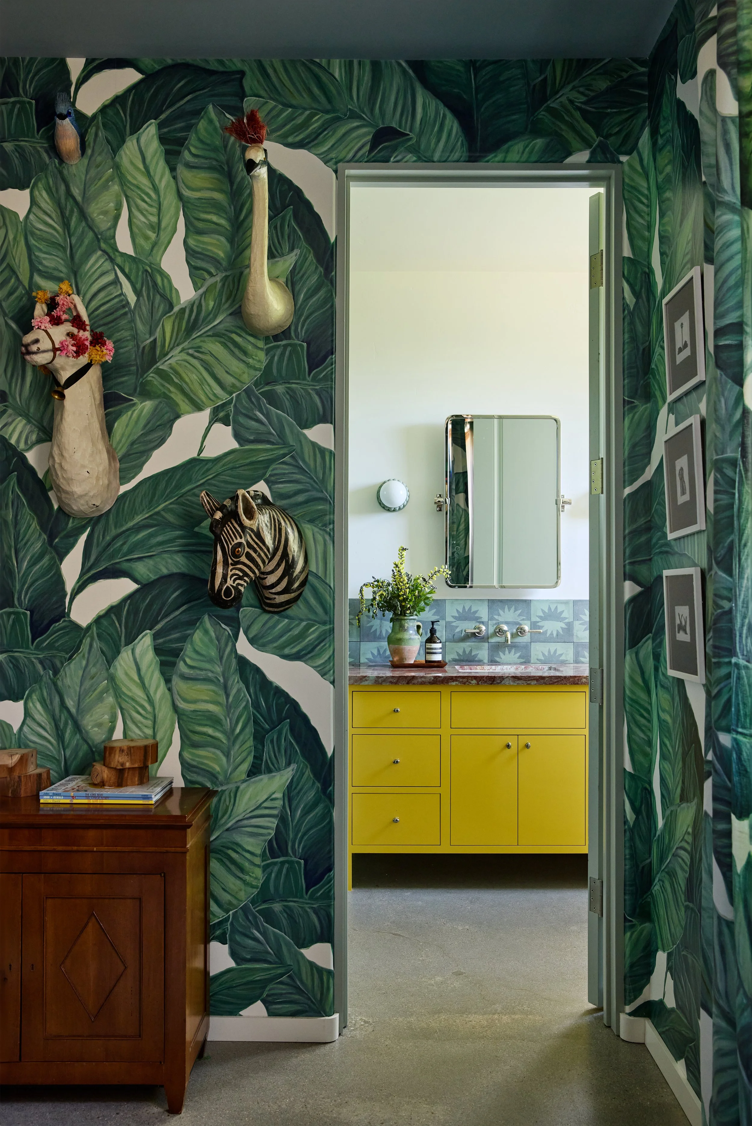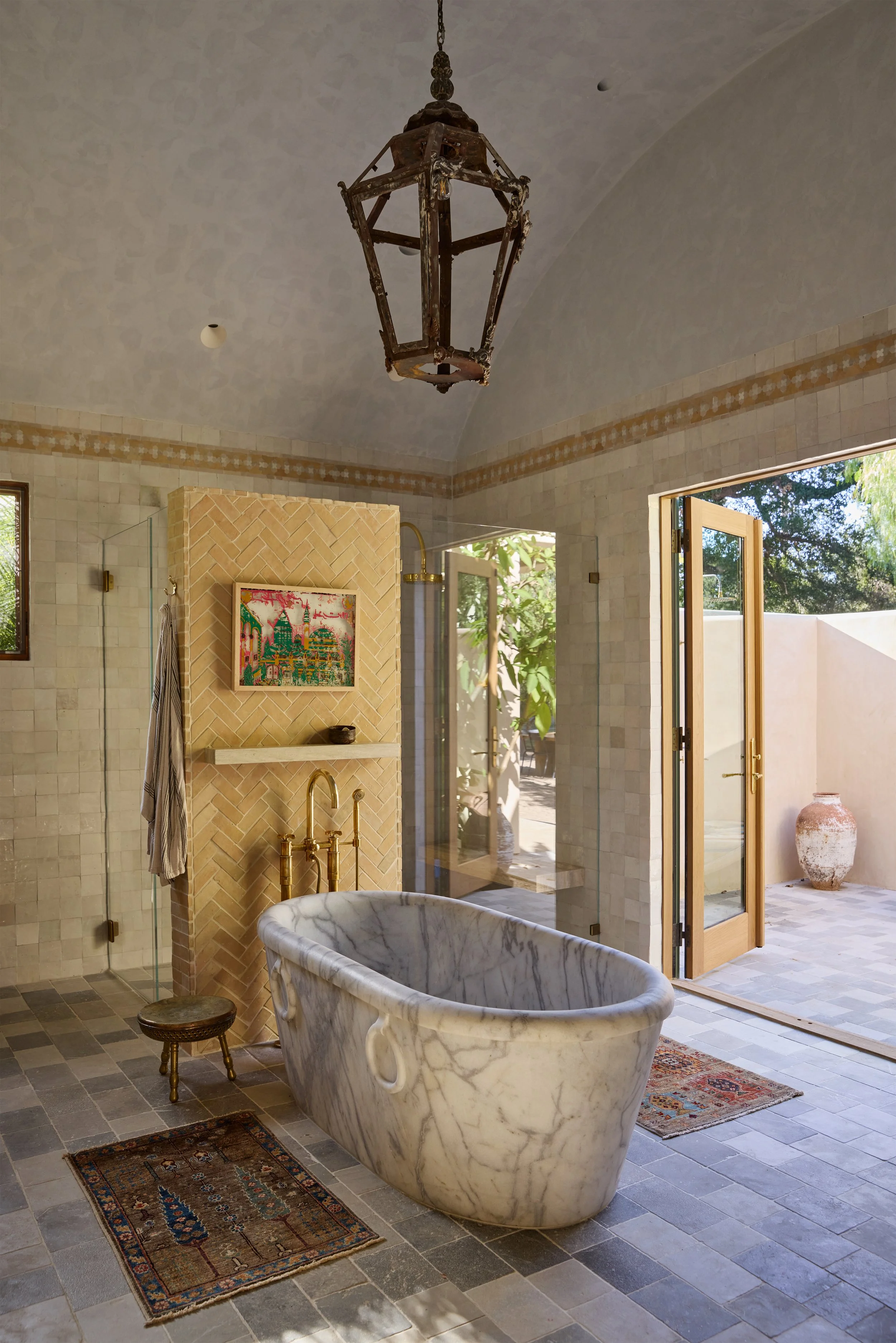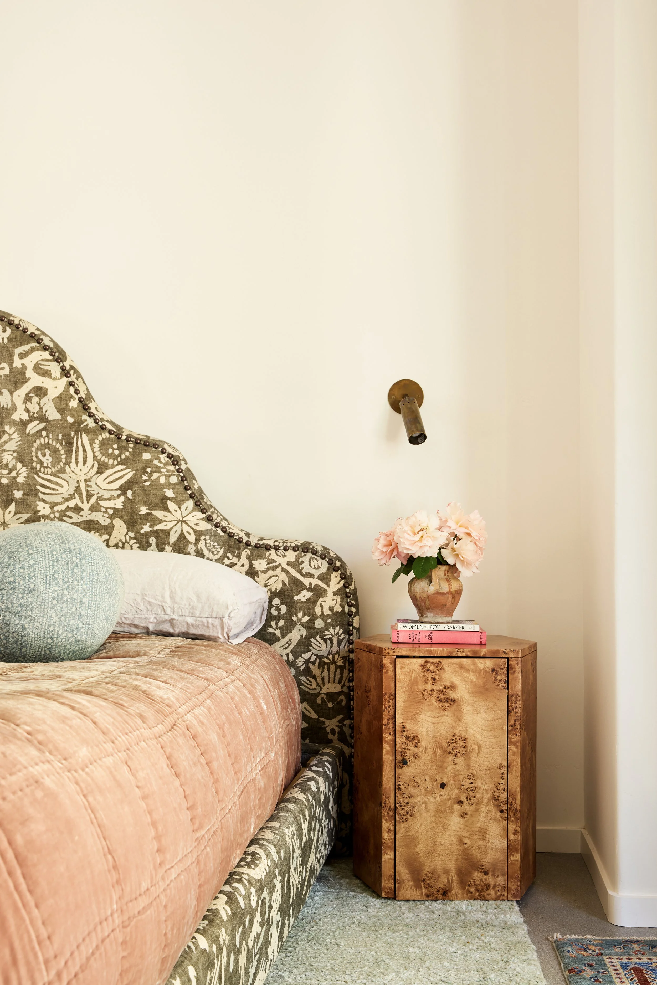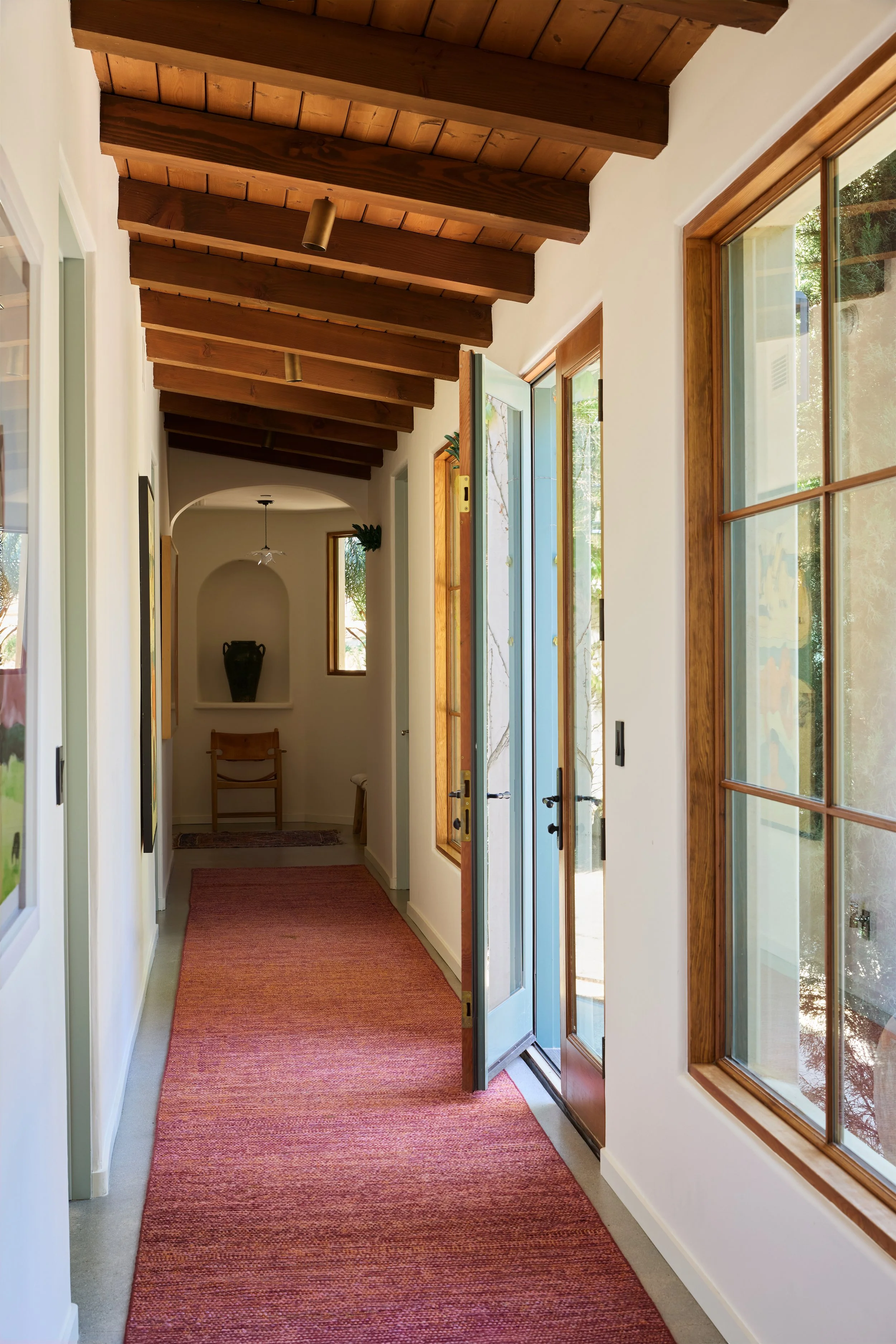 A home for a family that is well traveled, well read, and who is just as at home in the slow pace of a small country town in California as a fast paced global city like Istanbul. The couple has been steeped in Moorish Culture and History, but also has a penchant for English flair. Pink, terra cotta and the occasional wine tone became the leading actors against a backdrop of California oak tones and olive greens. We designed custom built ins to showcase their notable collection of Mediteranean ephemera, extensive book collections, and curios that have been acquired during their travels.